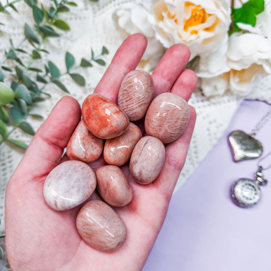 Vaaleanpunainen kuukivi rumpuhiottu