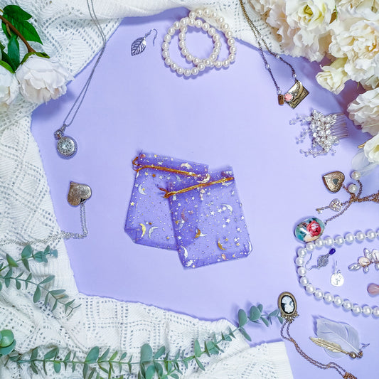 Lila pussi kuu & tähdet