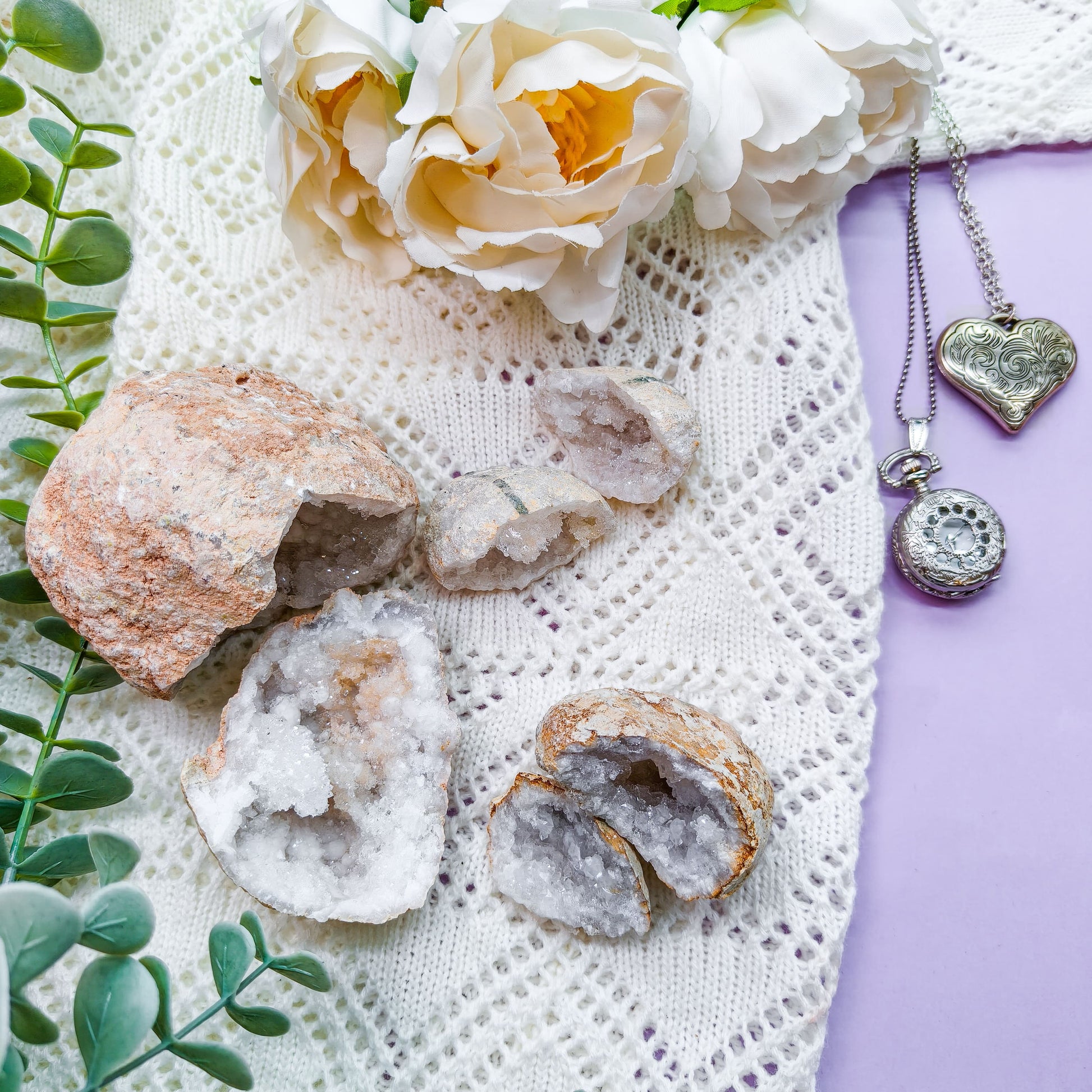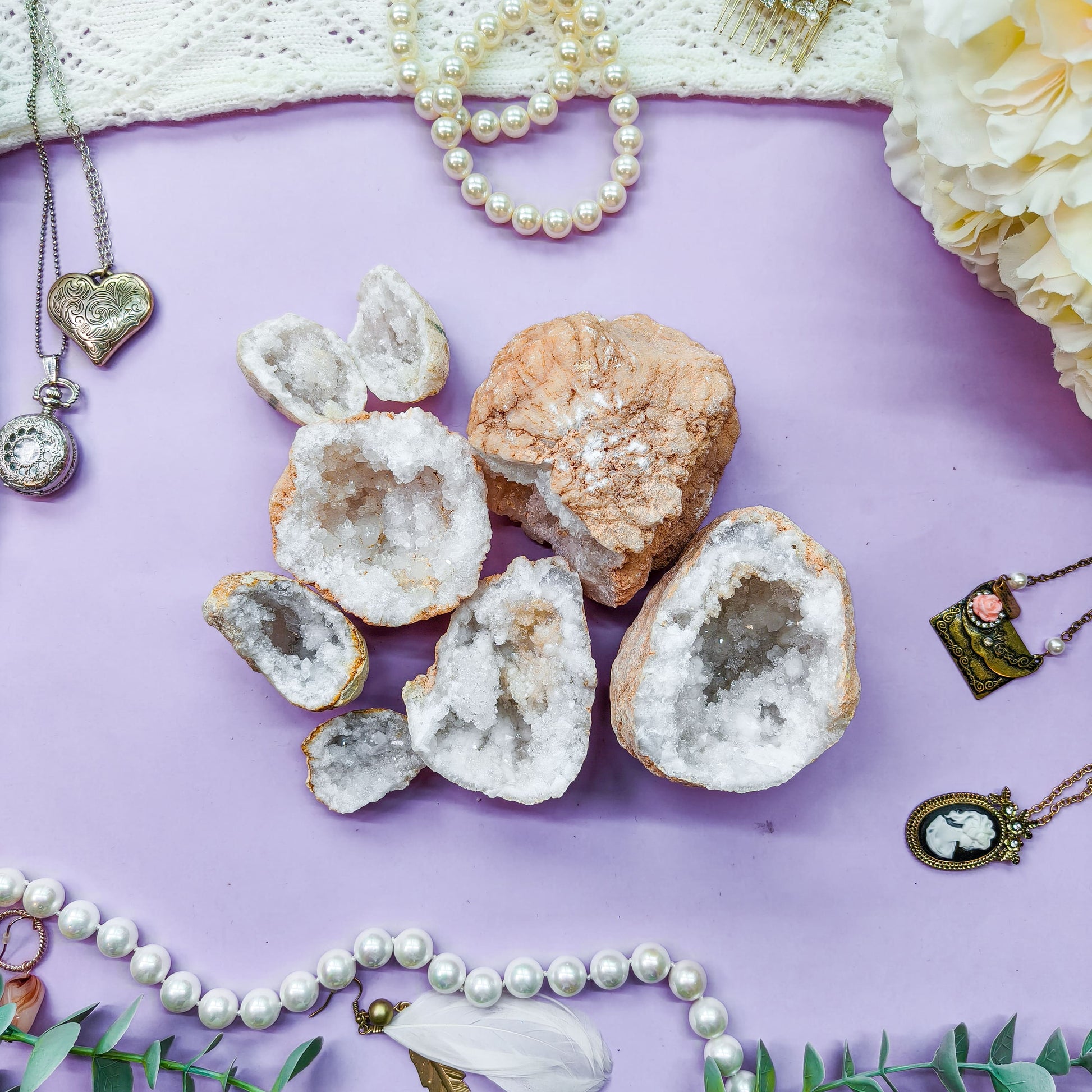 Jokainen geodi on oma uniikki yksilönsä ja jokainen geodi on joko kahdessa tai kolmessa osassa. Ne hajoavat helposti, joten käsittele varoen.