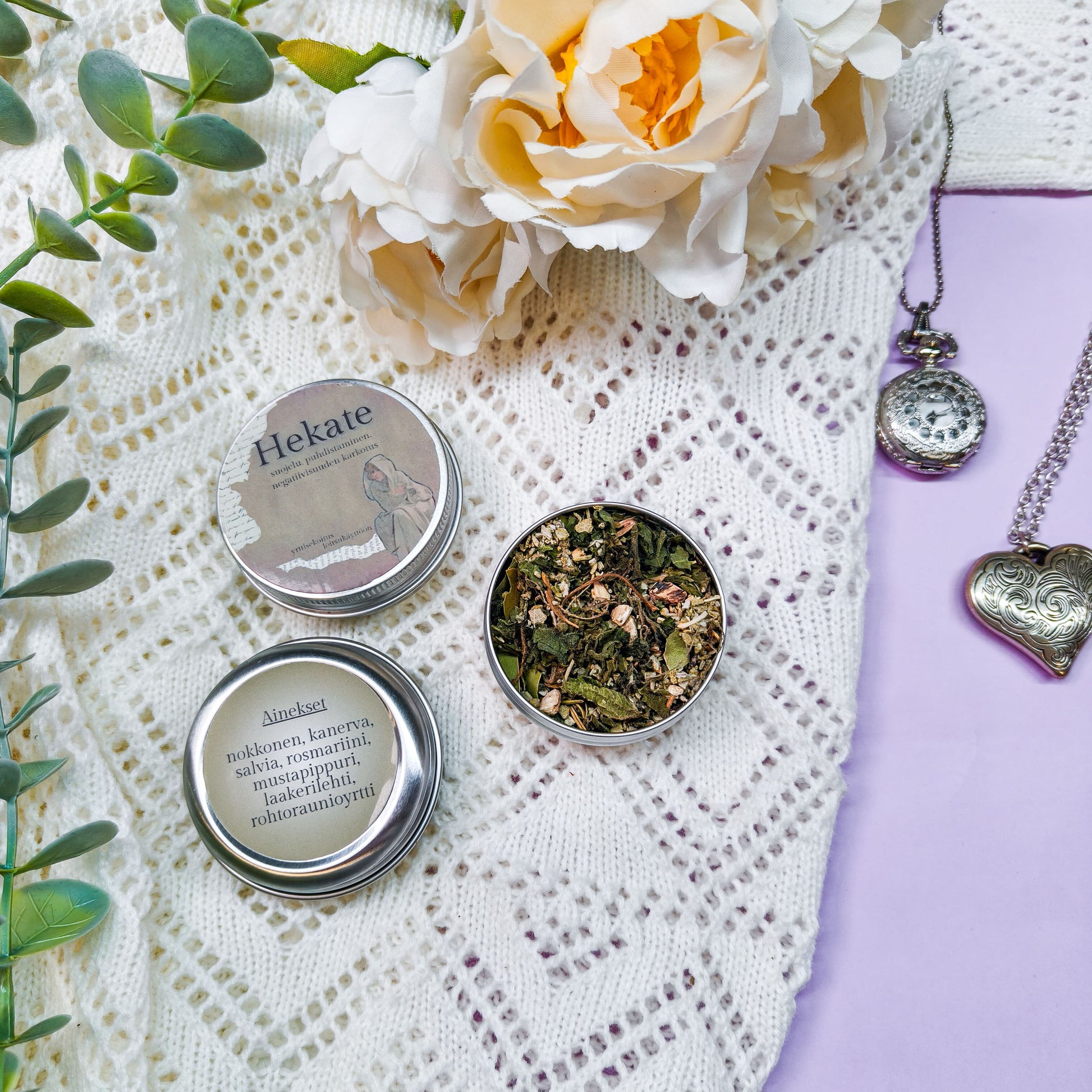 Ainekset: nokkonen, kanerva, salvia (ei valkosalvia), rosmariini, mustapippuri, laakerinlehti, rohtoraunioyrtti