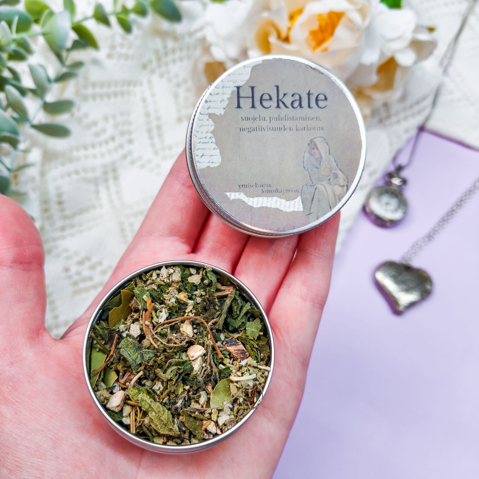 Huomaathan, että noitakauppana valikoimaan kuuluu myös suitsukkeita ja pienyrityksenä kaikki tuotteet ja pakkausmateriaalit säilytetään samoissa tiloissa, joten kaikissa tuotteissa ja pakkausmateriaaleissa voi olla mieto suitsukkeiden tuoksu. Huomioithan tämän tilauksia tehdessäsi, mikäli sinulla on hajusteyliherkkyyksiä.
