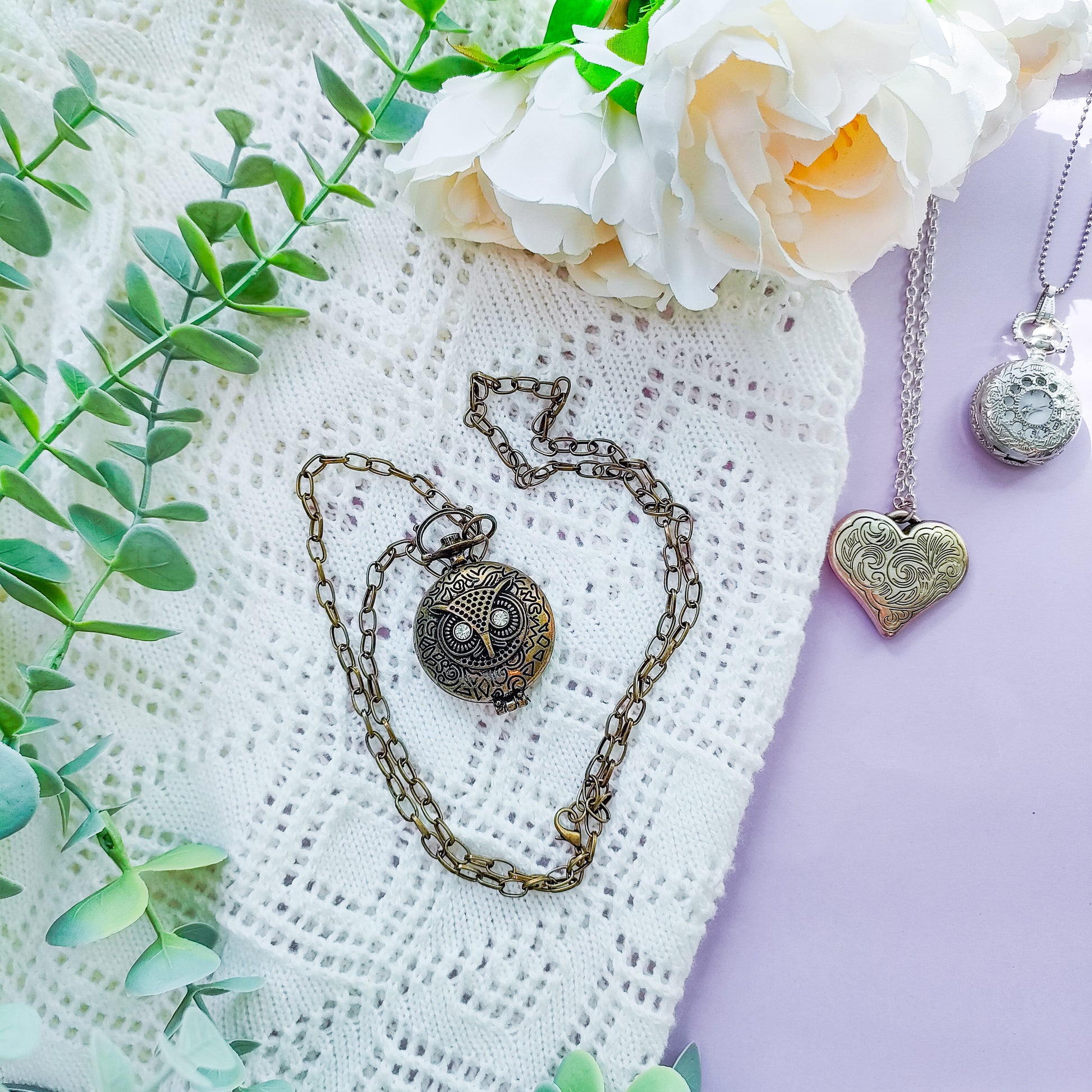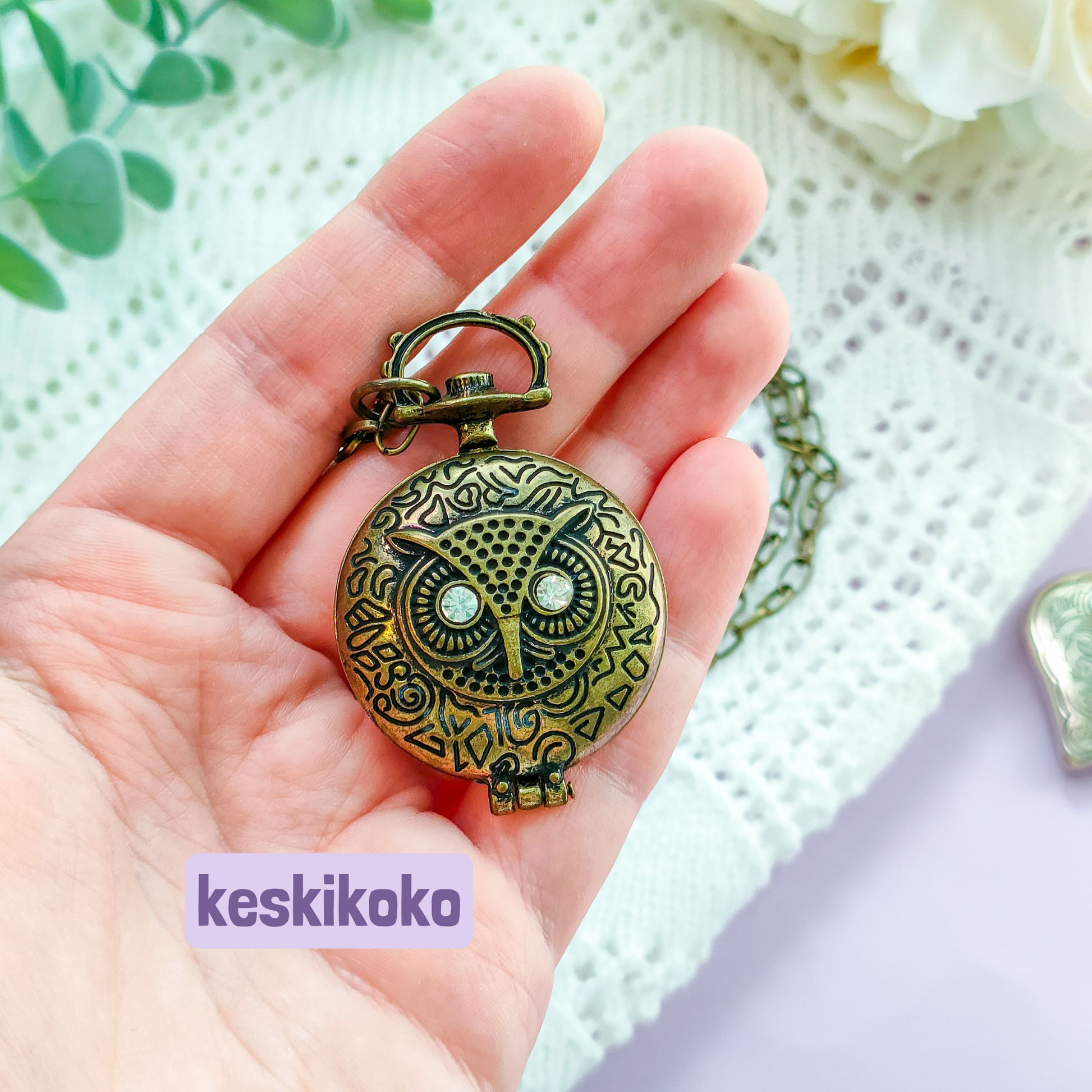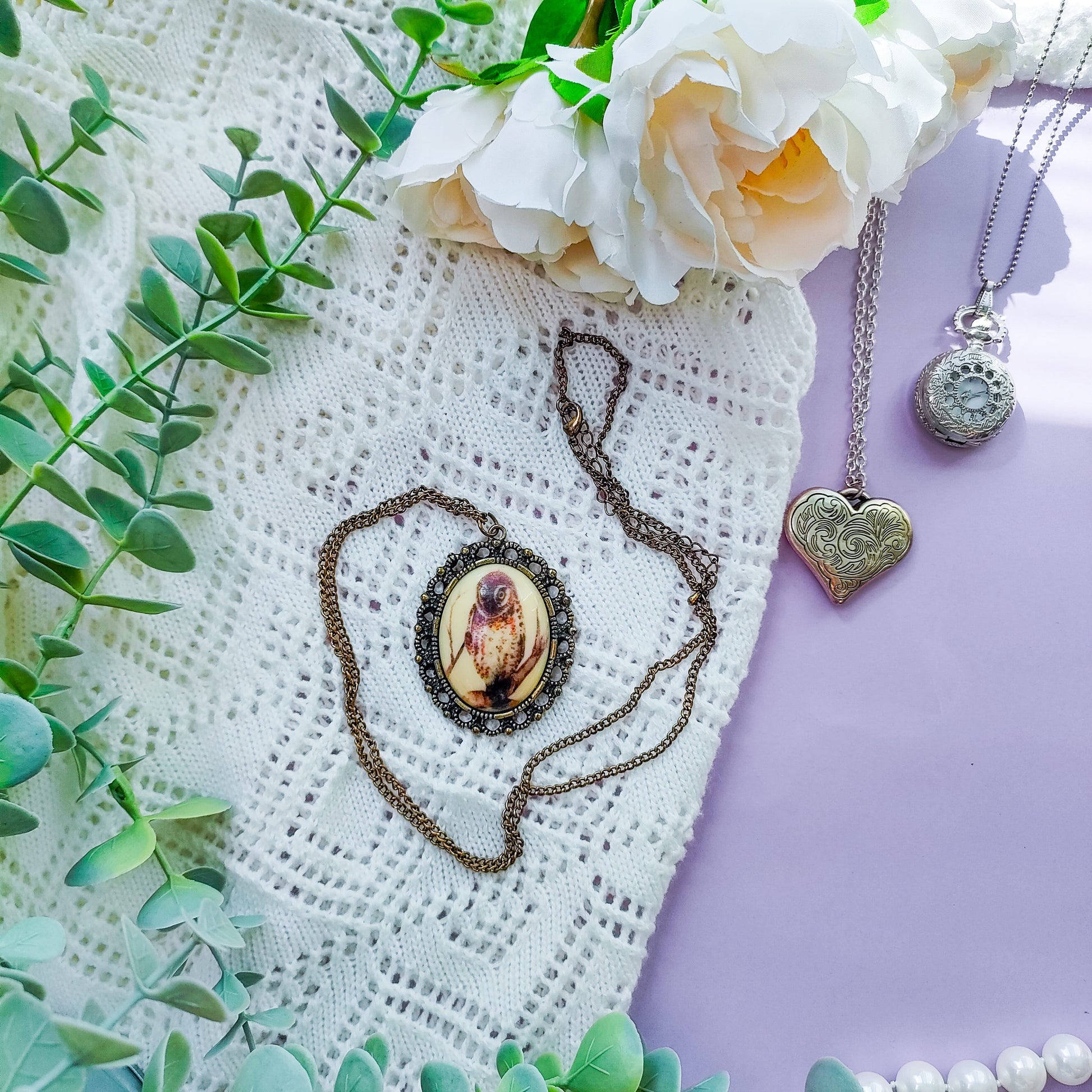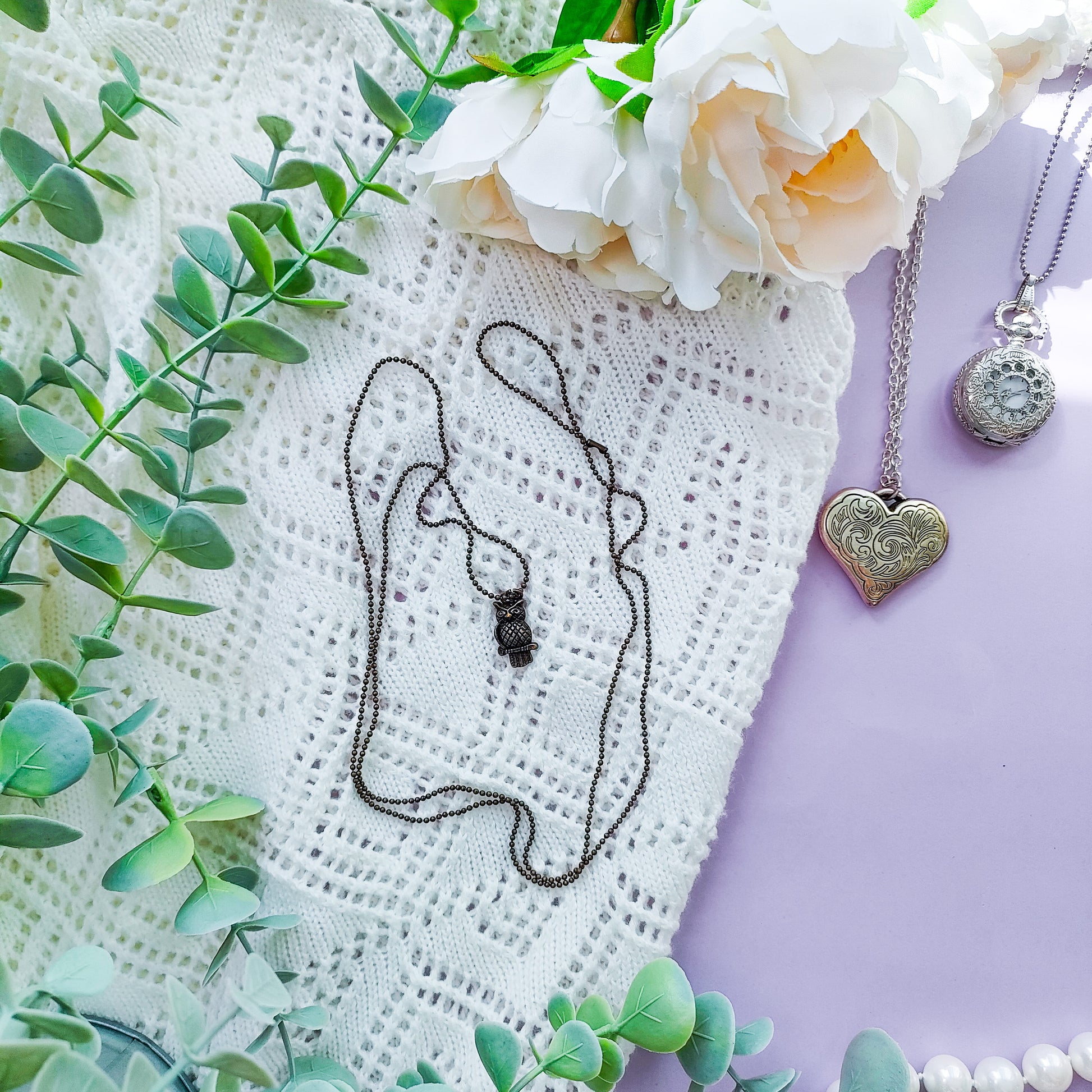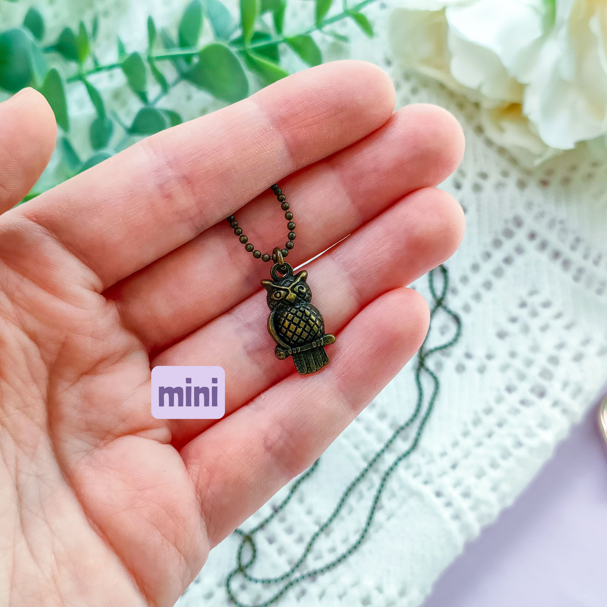 Kolme erilaista pöllöteemaista kaulakorua, valitse haluamasi vaihtoehto.