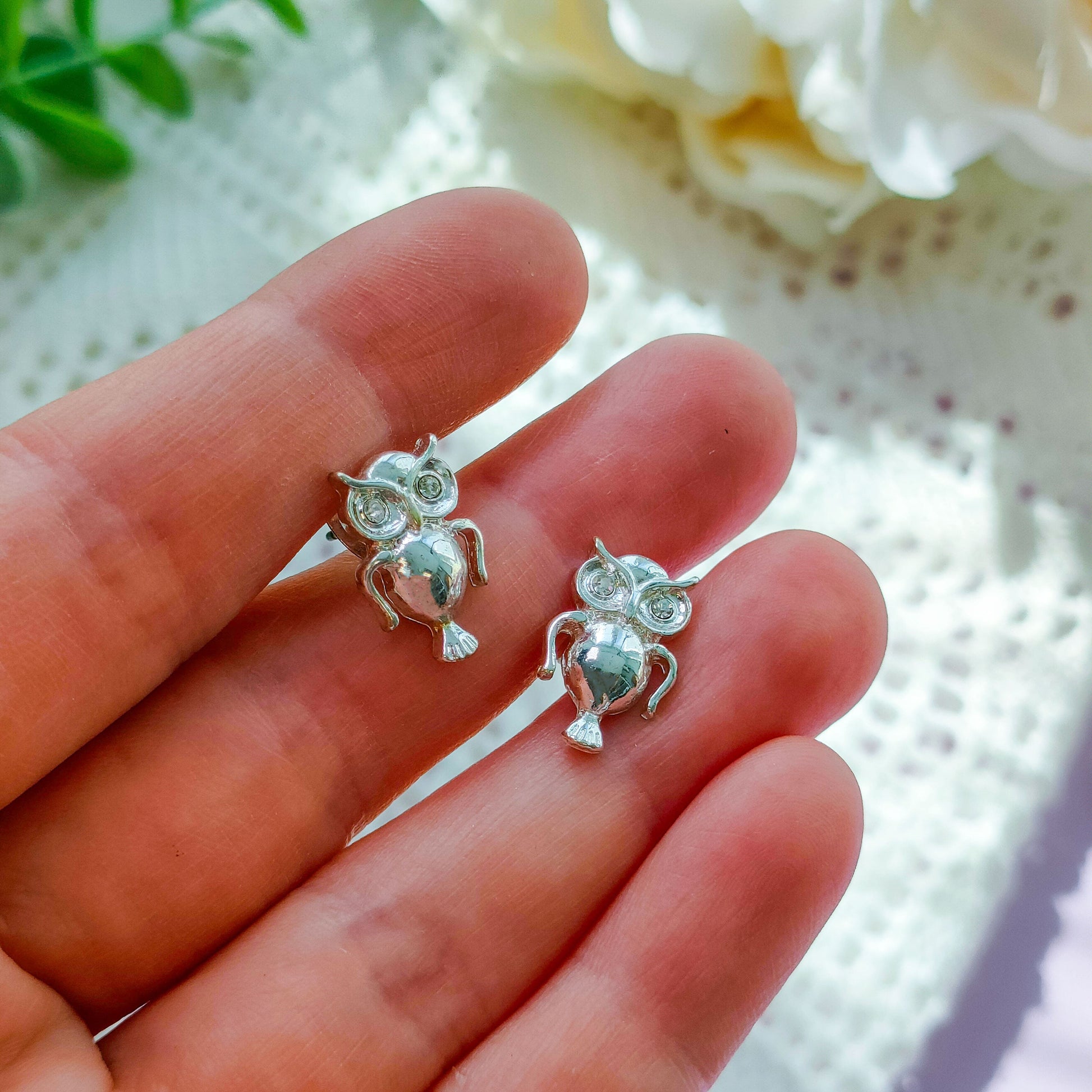 Hopeanväriset pöllöteemaiset nappikorvakorut.