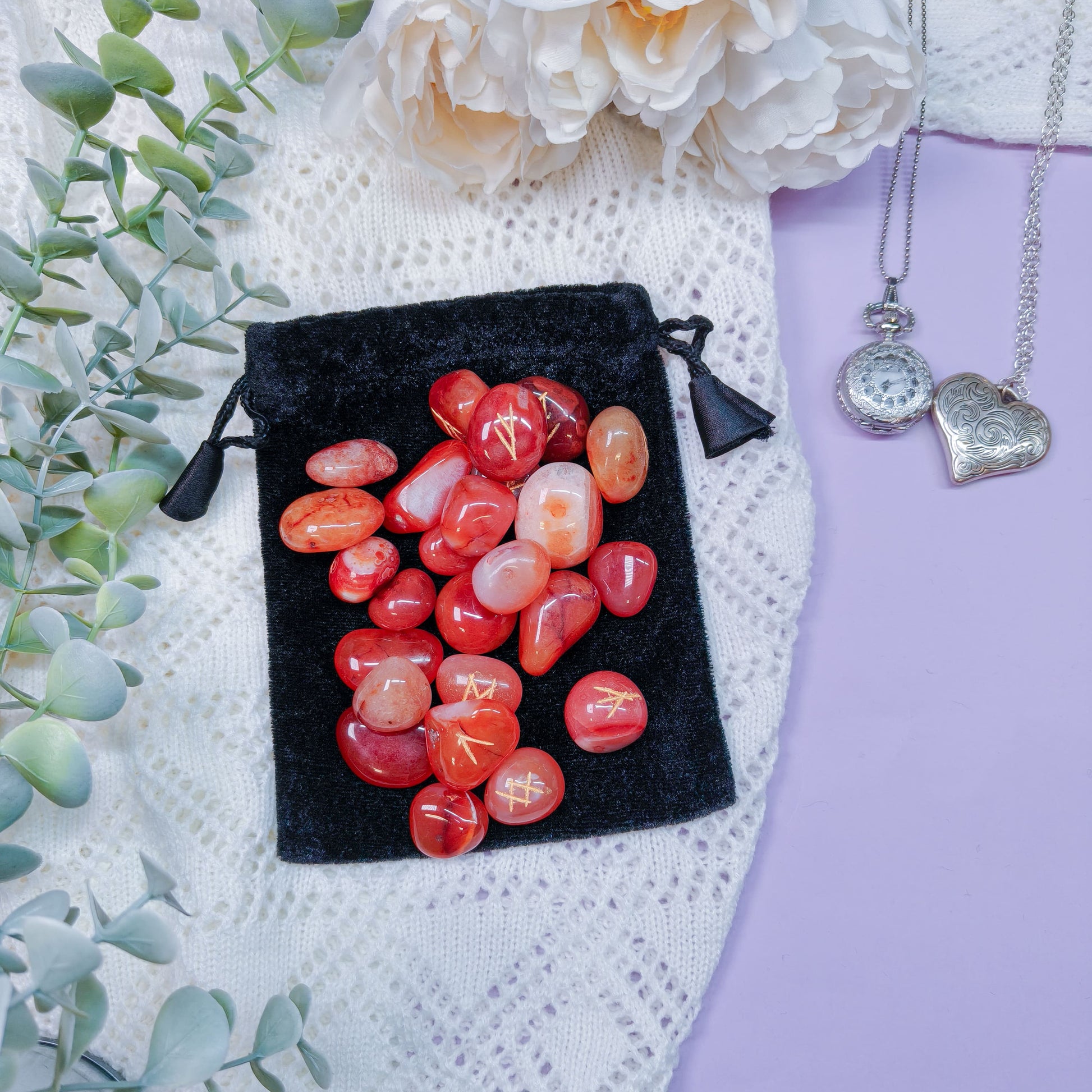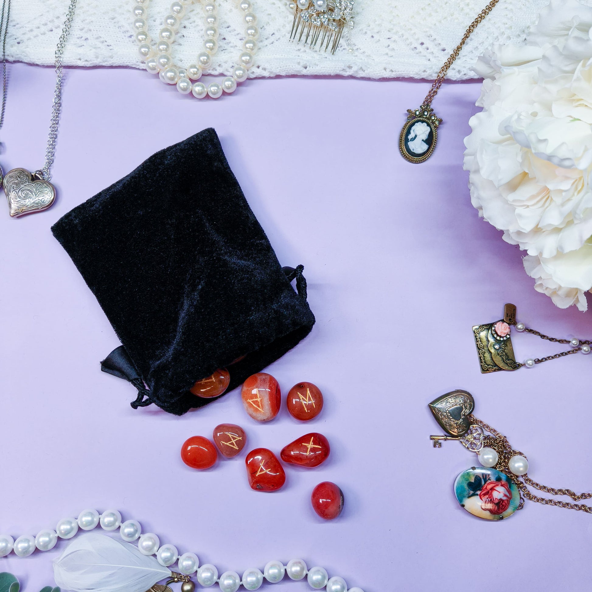 ♥ Yksi riimusetti sisältää 24 vanhan Futharkin riimua sekä yhden tyhjän kristalliriimun ja pussin niille kaikille.