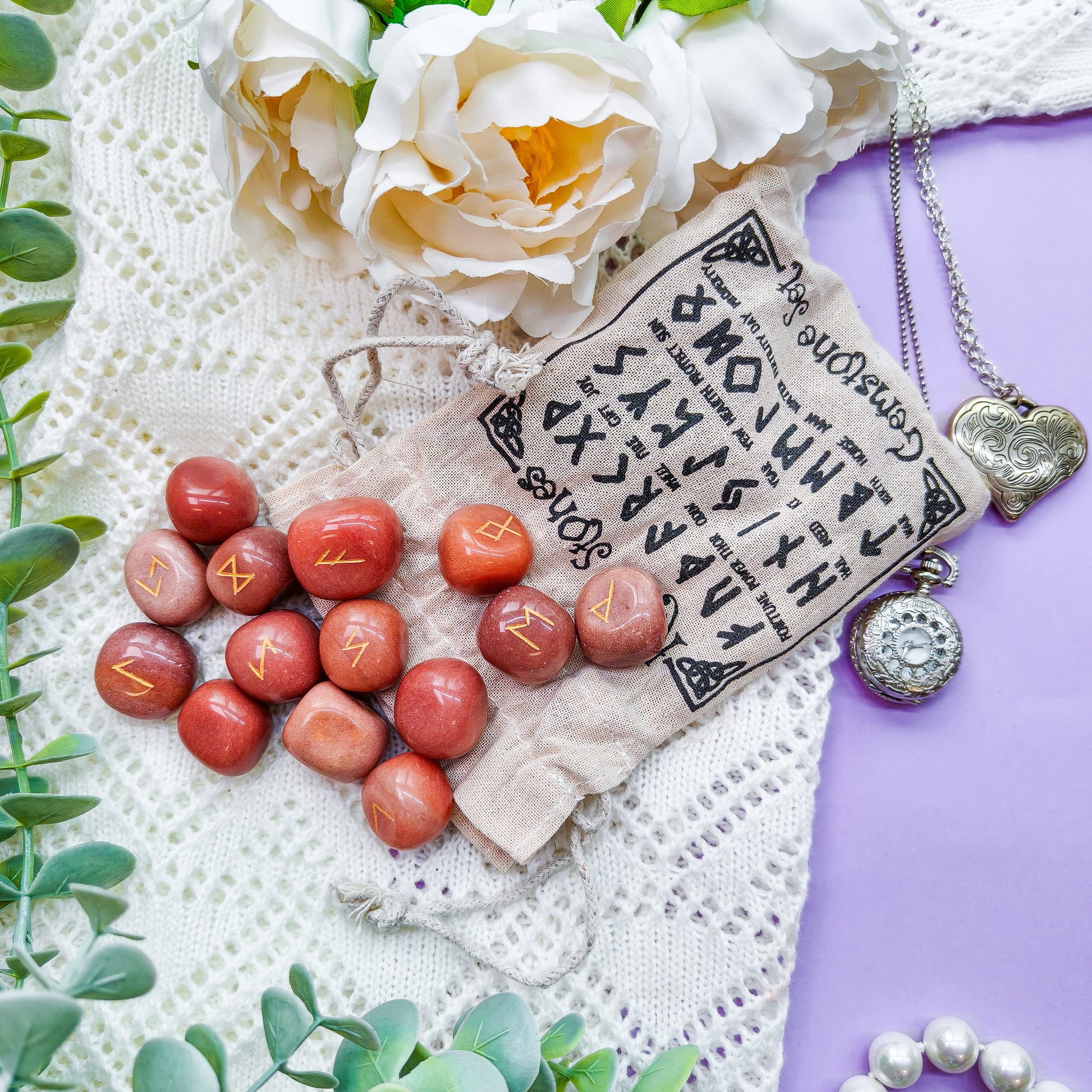 ♥ Yksi riimusetti sisältää 24 vanhan Futharkin riimua sekä yhden tyhjän kristalliriimun ja pussin niille kaikille.