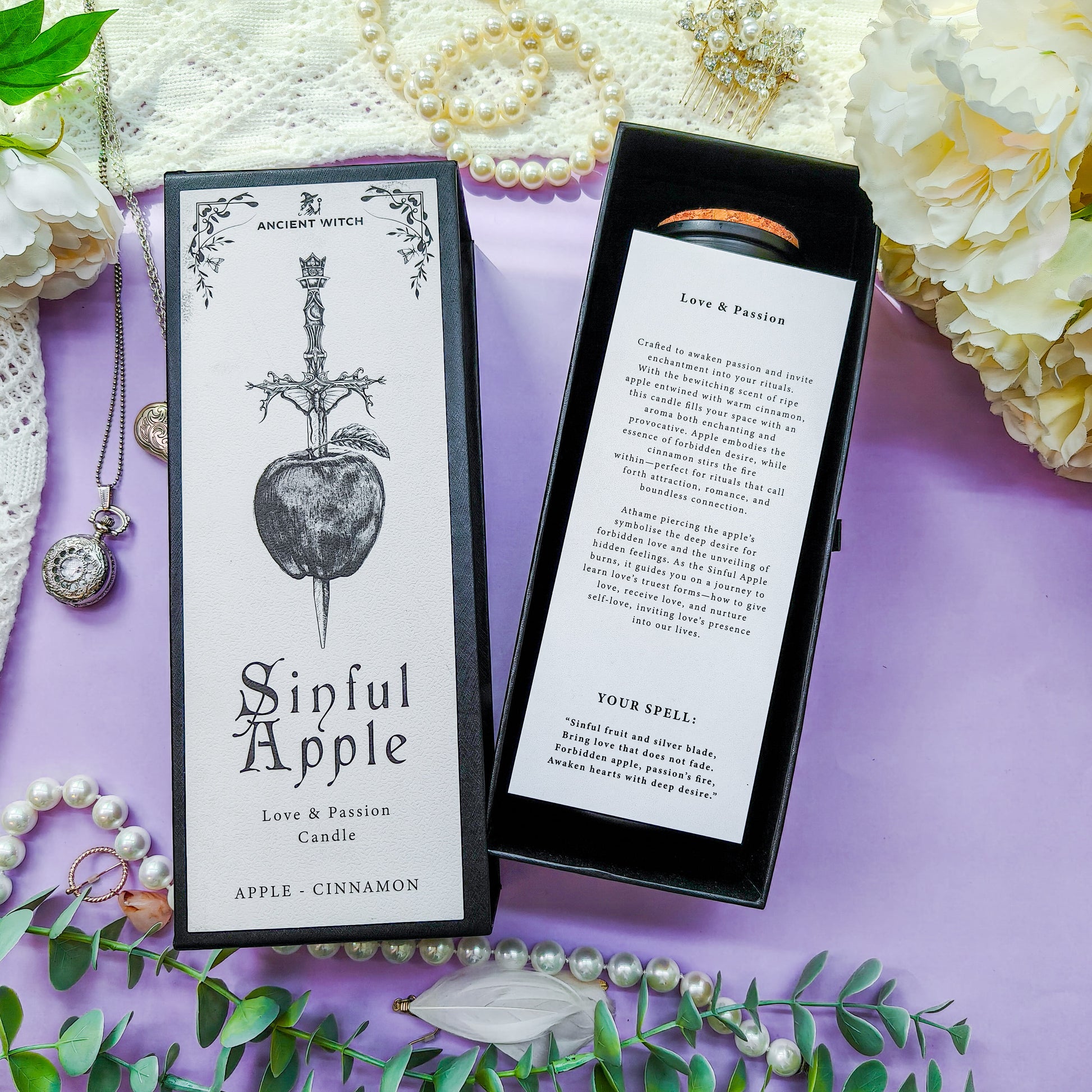 Tuoksuva valkoinen rituaalikynttilä ylellisessä mustassa pakkauksessa. Mukana kynttilää kuvaileva kortti ja loitsu. Kynttilän upeaa säilytyslaatikkoa voi käyttää myöhemmin pienesineiden säilytykseen. Täydellinen lahjaidea!