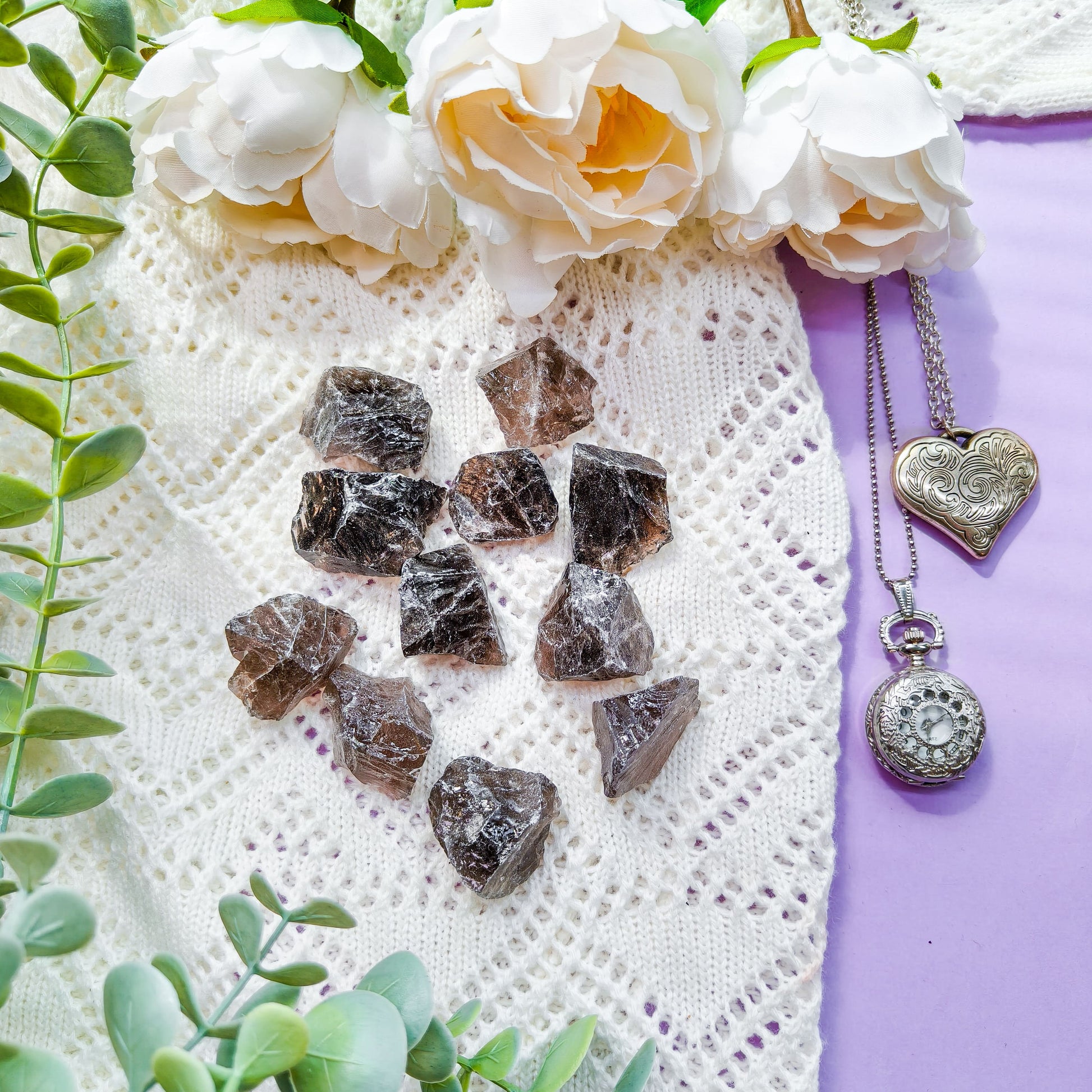 Avainsanat: savukvartsi, kvartsi, musta, ruskea, läpinäkyvä, väritön, raaka, aloittelija, kristalli, voimakivi, energiakivi