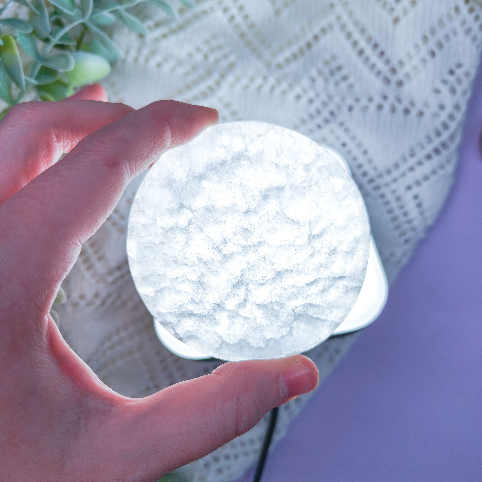 Soveltuu erityisesti kristallien ja muiden pienesineiden lataamiseen ja puhdistamiseen. Satiinisälpä, jota kutsutaan usein seleniitiksi. Yksi yleisimpiä kristalleja. Sopii erityisen hyvin aloittelevalle kristalliharrastajalle.