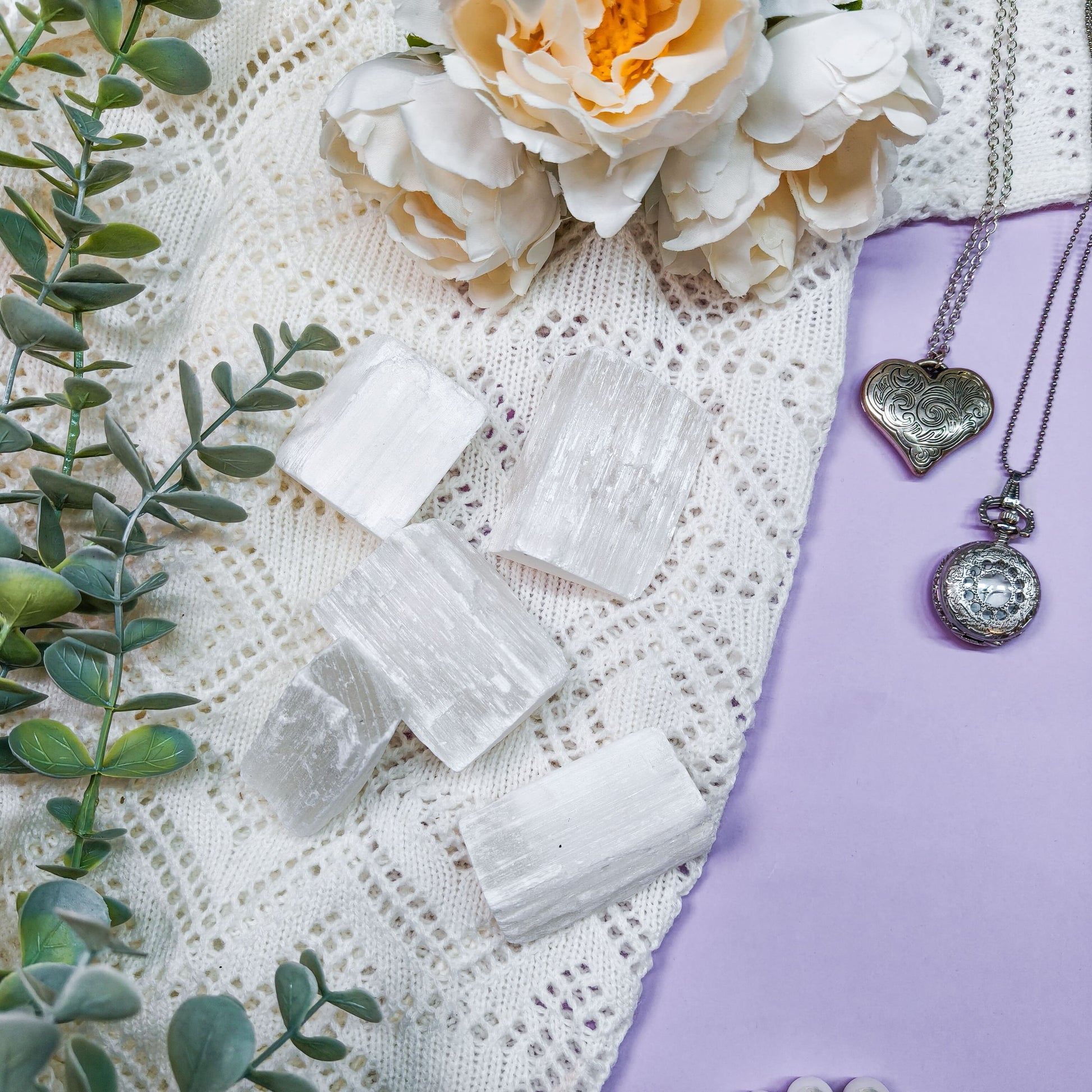 Avainsanat: seleniitti, satiinisälpä, satin spar, gypsum, valkoinen, raaka, aloittelija, kristalli, voimakivi, energiakivi