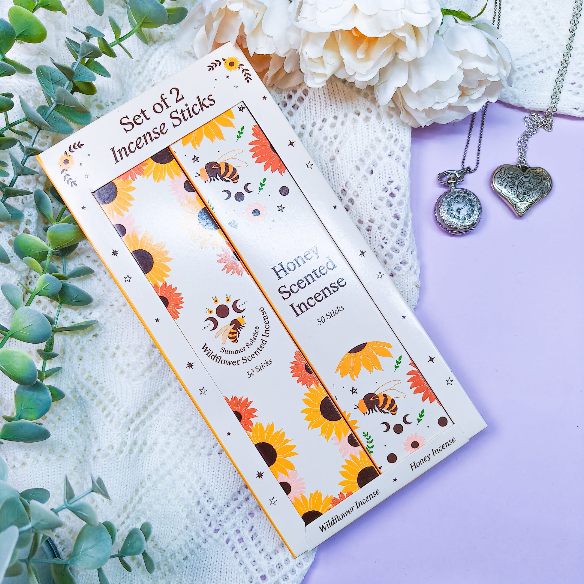 Suitsukesetti sisältää kaksi pakkausta suitsuketikkuja.